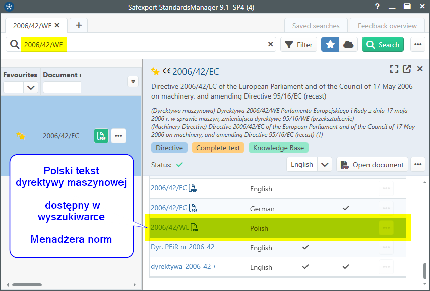 Dzięki temu już dziś możliwe jest używanie hiperłączy do polskiego tekstu dyrektywy oraz kontekstowych podpowiedzi (m.in. w trakcie oceny ryzyka).