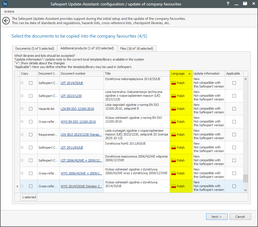 Kolejne prace nad tłumaczeniami są w toku. W przypadku uwag dotyczących tłumaczeń lub zauważonych nieścisłości zachęcamy do ich zgłaszania. Każda informacja zwrotna przyczyni się do udoskonalenia polskiej wersji Safexpert.